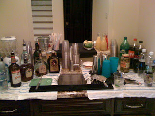 FYI, Mr. Garza rented glasses, coolers, and also a mobile bar for his wedding. The reception hosted around 50 people. This wedding had a semi full bar. I made several martini combinations.